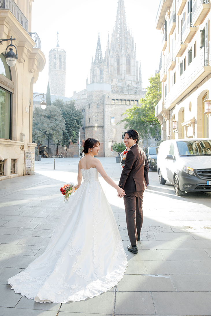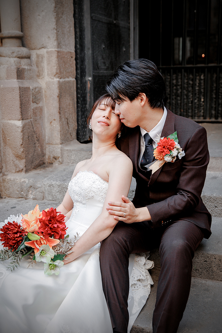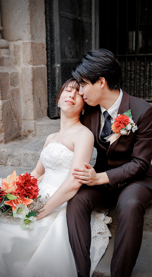 Bold orange arrangement カジュアルでありながら、ハイネックのタイトドレスが素敵な衣装には、ボリュームのあるブーケを。この絶妙なバランスは、まさにクールでシンプルなオシャレ上級コーデ。全体をすっきりとまとめることがポイント! CATEGORIESオレンジ/レッド系ブーケ, ゴシック地区, 冬SEASON1月中旬BOUQUETユリ/ダリア/サツキHAIR MAKEUPシニヨンスタイルCOLOR COORDINATION